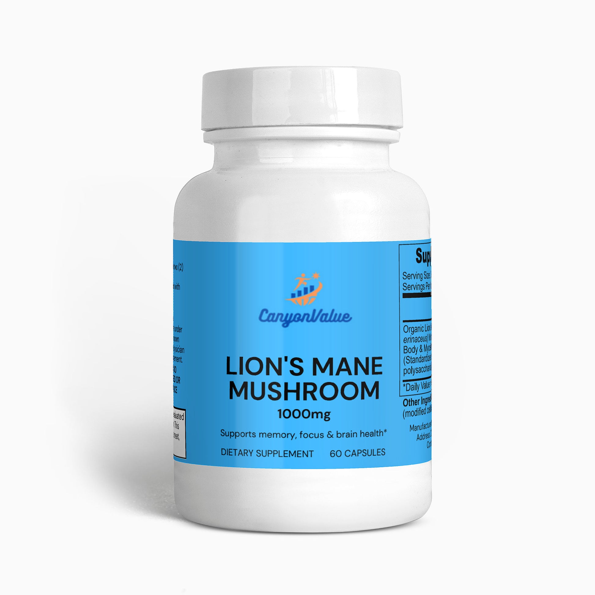 Ingredients: Organic Lion’s Mane (Hericum erinaceus) Mushroom Fruiting Body & Mycelium Powder (Standardized to 40% polysaccharides [400mg]), Vegan Capsule (modified cellulose, water).