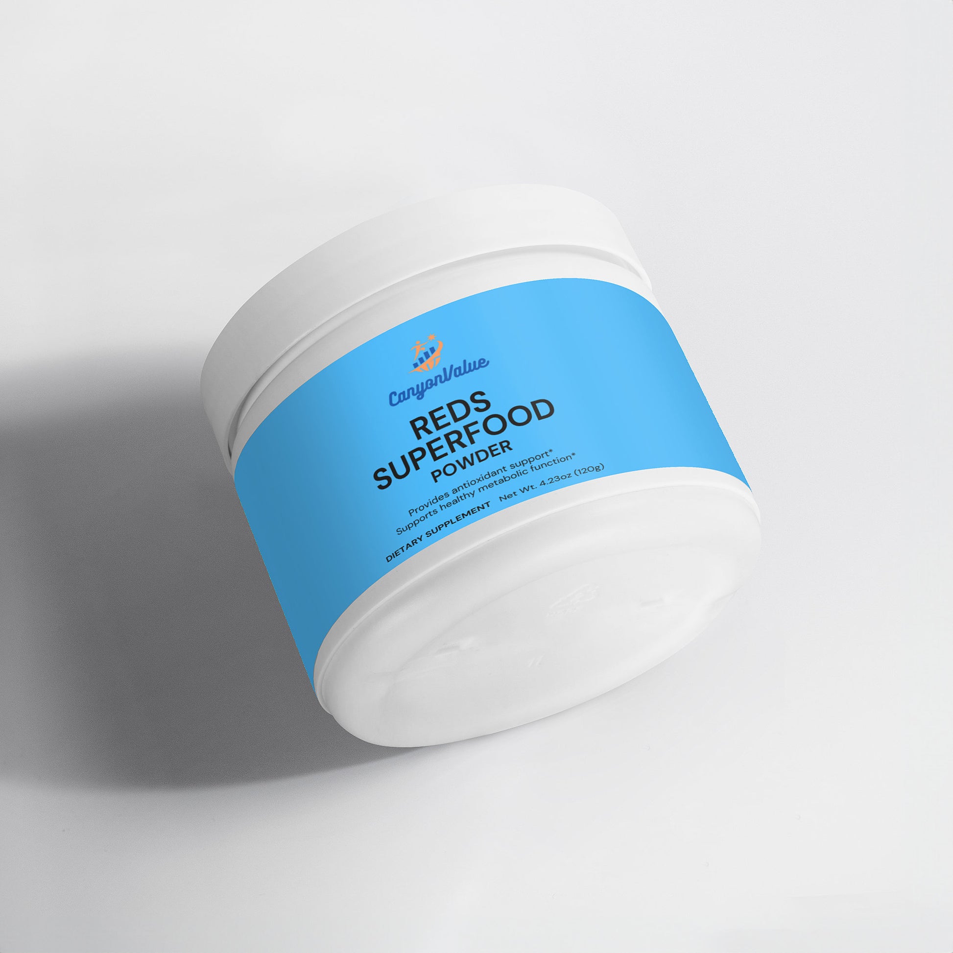 This reds powder supplement offers a rich blend of fruits, vegetables, and botanicals aimed at delivering antioxidants, fiber, and essential nutrients for overall health. The formula includes Beet Root, Strawberry Juice, Hibiscus, and a variety of other nutrient-dense ingredients like Acai Juice Powder and Cranberry Powder, designed to support optimal wellness. With a content of 120 grams, this supplement is perfect for daily consumption, providing a convenient way to boost your intake of vital nutrients and antioxidants to support health and vitality without the need for artificial additives.*