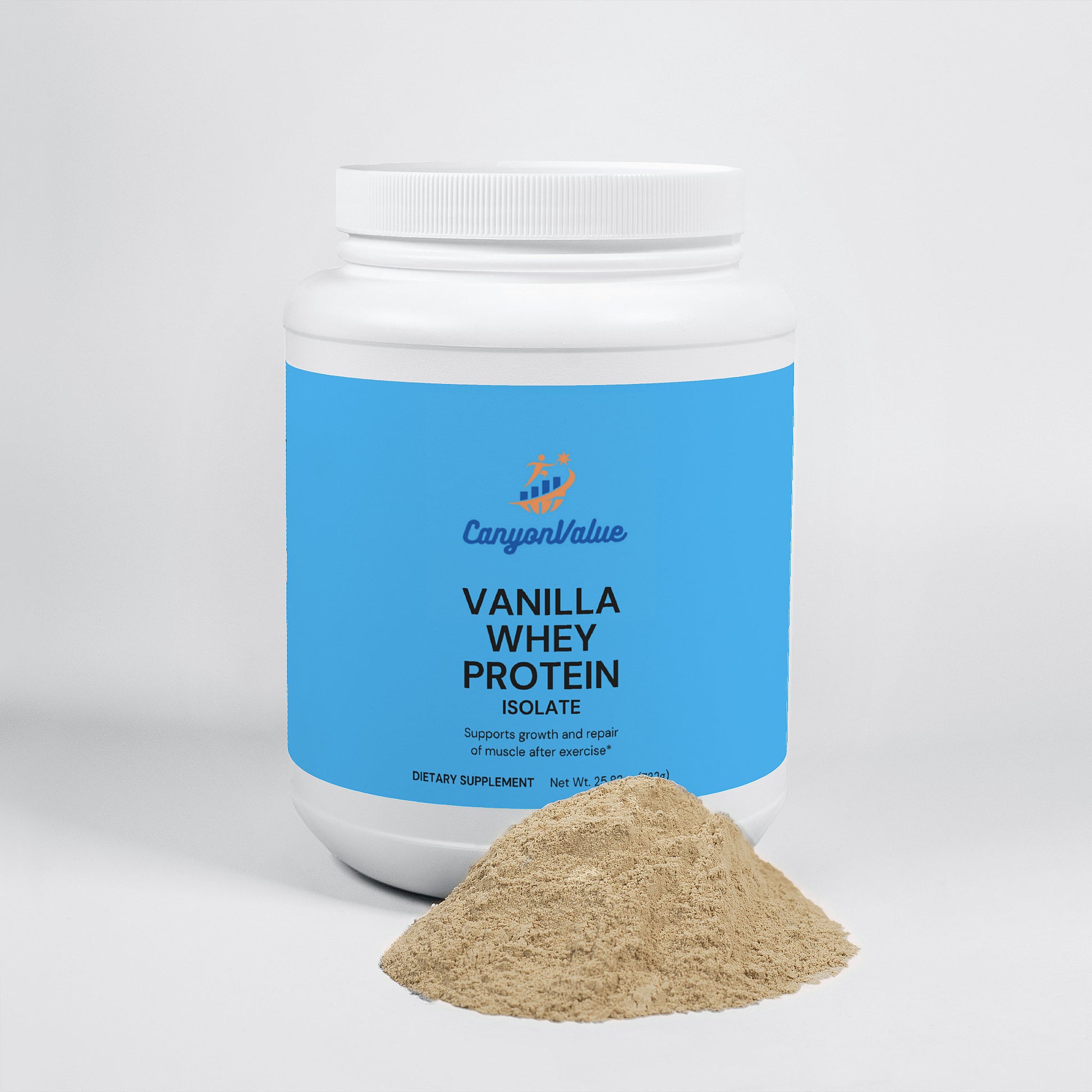 Our Vanilla Whey Protein Isolate is meticulously crafted to support muscle growth and recovery, providing an optimal blend of nutrients for athletes and fitness enthusiasts alike. This premium protein supplement is made with pure whey protein isolate, the purest form of whey available, ensuring maximum protein content with minimal fat and lactose.*